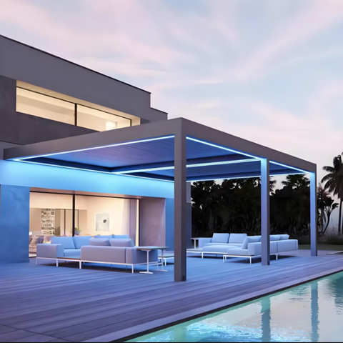 หลังคาเพอร์โกลาแบบปรับได้ตามต้องการ เฟอร์นิเจอร์บ้าน หลังคาคลุมสวน กันสาดหรูหรา ระบบไบโอคลามาติก ทำจากอะลูมิเนียม ศาลาพักผ่อนกลางแจ้ง